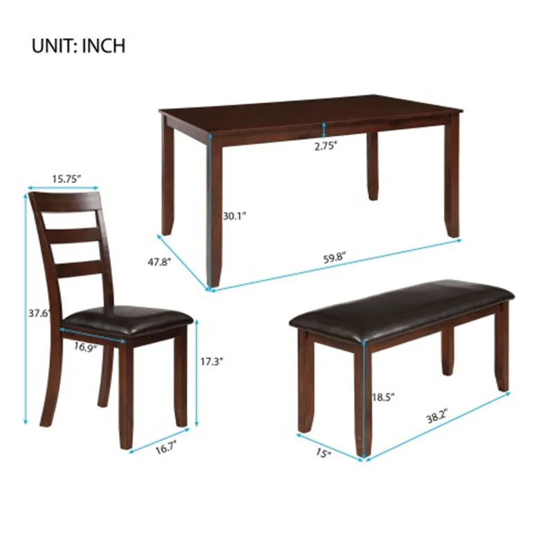 BEST SELLER 6pc Dining Set With 4 Ladder Chairs And Bench Espresso 4 Chairs And A Bench Beautifully Simple Dini